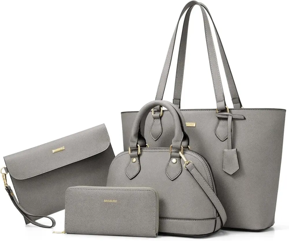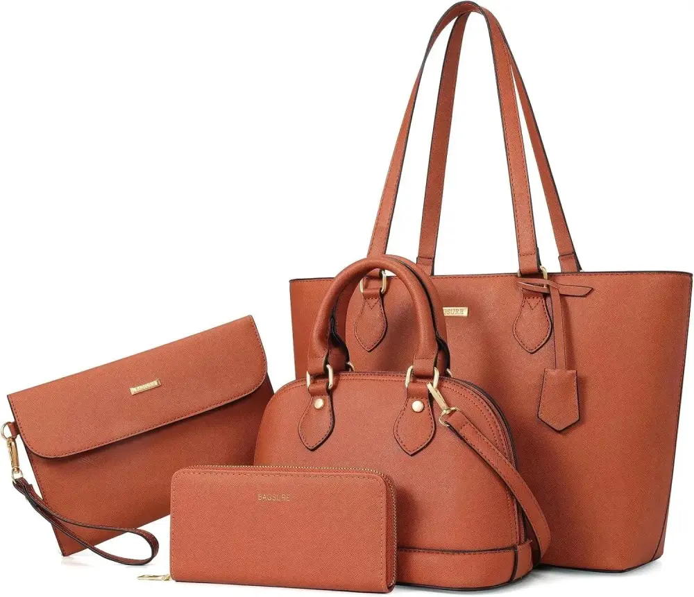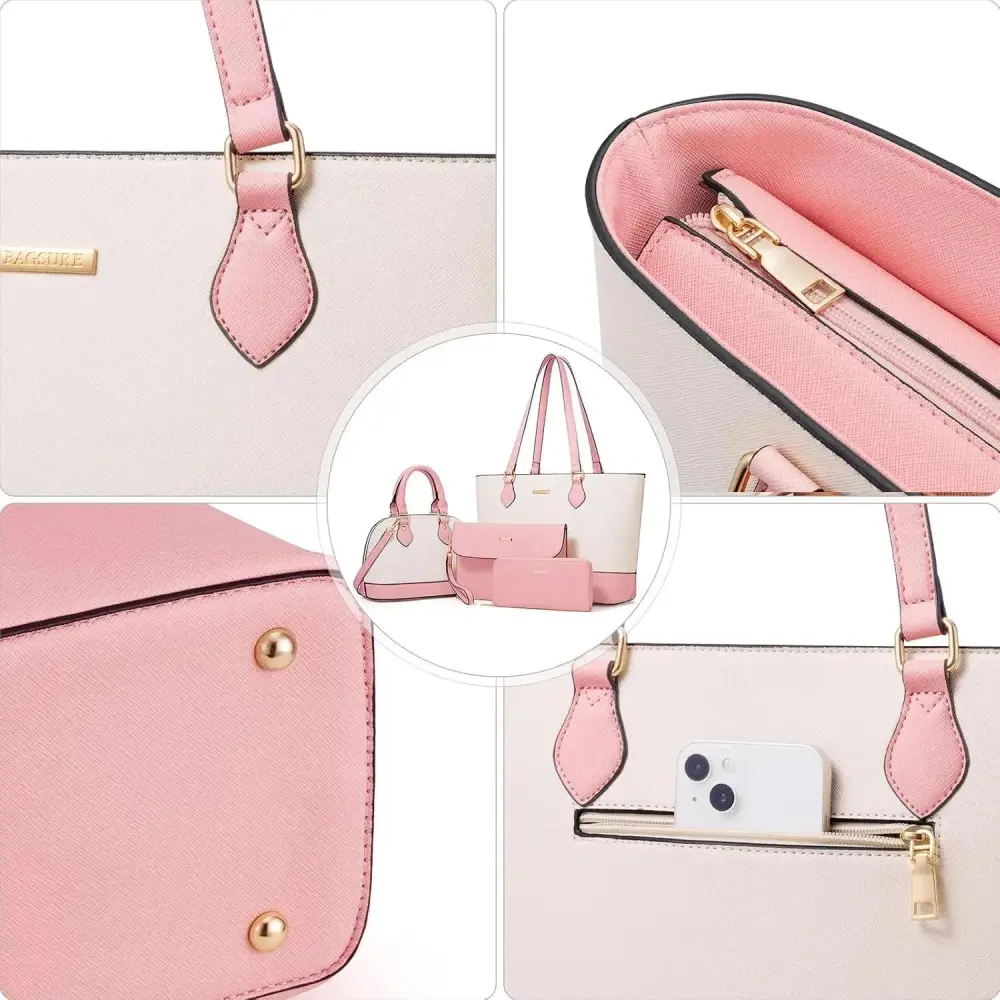 - FASHION & CASUAL STYLE: This womens tote purse made of high quality synthetic leather, The stitching is well-made as runs smoothly and evenly, feels cosy to touch. No deform or wrinkle, not easy to be out of shape; Environmentally friendly materials, no peculiar smell. Every women definitely worth this 4pcs set ladies purses and handbags.