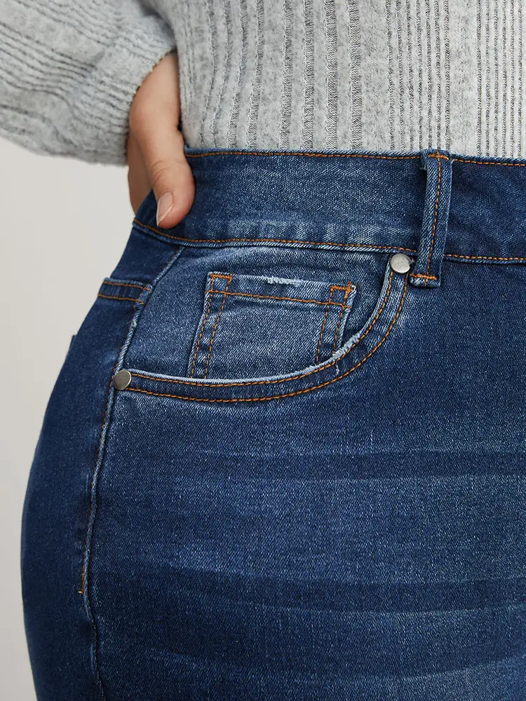 Mom Jeans Straight Very Stretchy High Rise Medium Wash Contrast Jeans